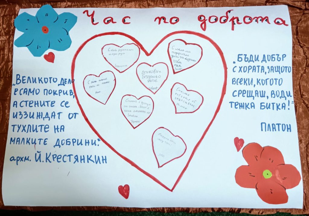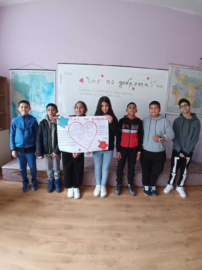 През месец декември 2025г. ученици от ОУ „Христо Ботев“-с. Божурица, под ръководството на г-жа Галя Петрова-преподавател по БЕЛ и английски език в училището се включиха в инициативата на Областна администрация-Плевен, МОН и РУО за „Урок по доброта-Плевен подава ръка“. Тя има за цел да насърчи проявите на уважение, съпричастност и взаимопомощ сред учениците.В проведения специален учебен час, посветен на темата за добротата учениците от пети клас споделиха своите примери за добрини, които са направили и изработиха постер.Снимки от часа по доброта бяха изпратени до Областна администрация-Плевен.